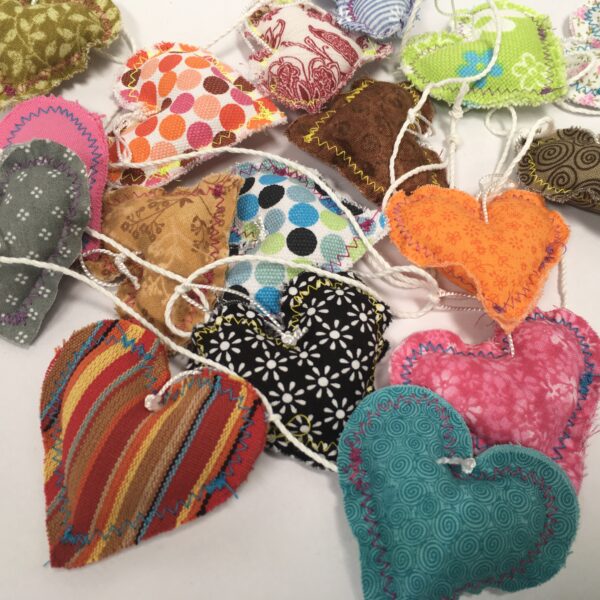 Guirnalda de17 corazoncitos elaborados en telas de colores.