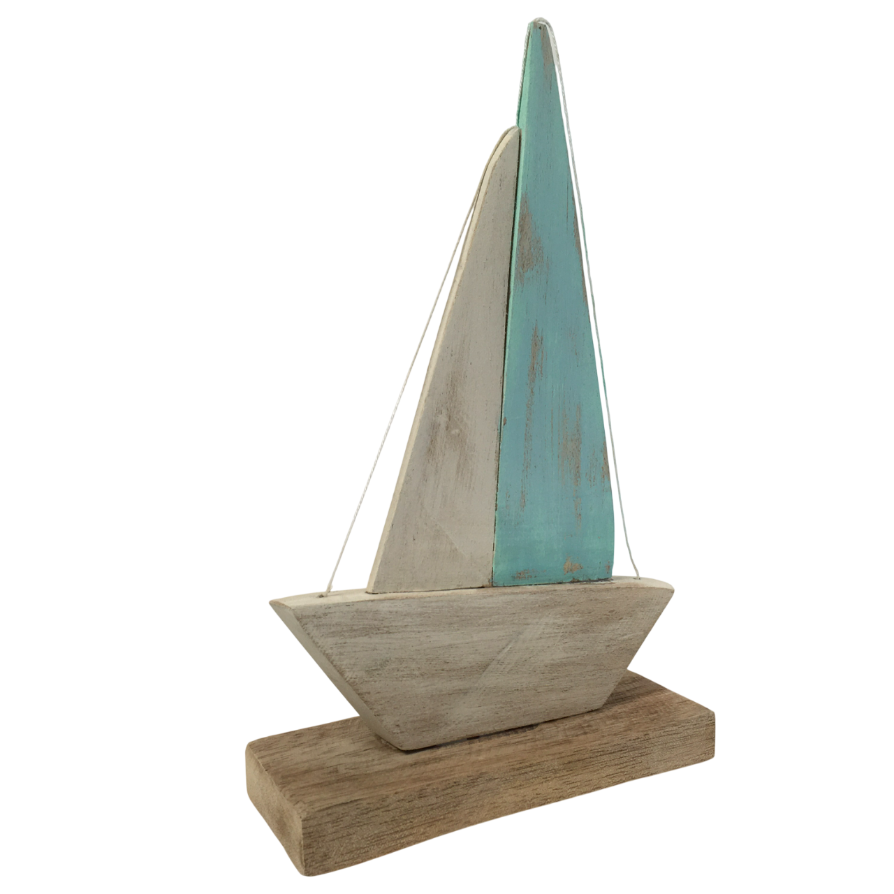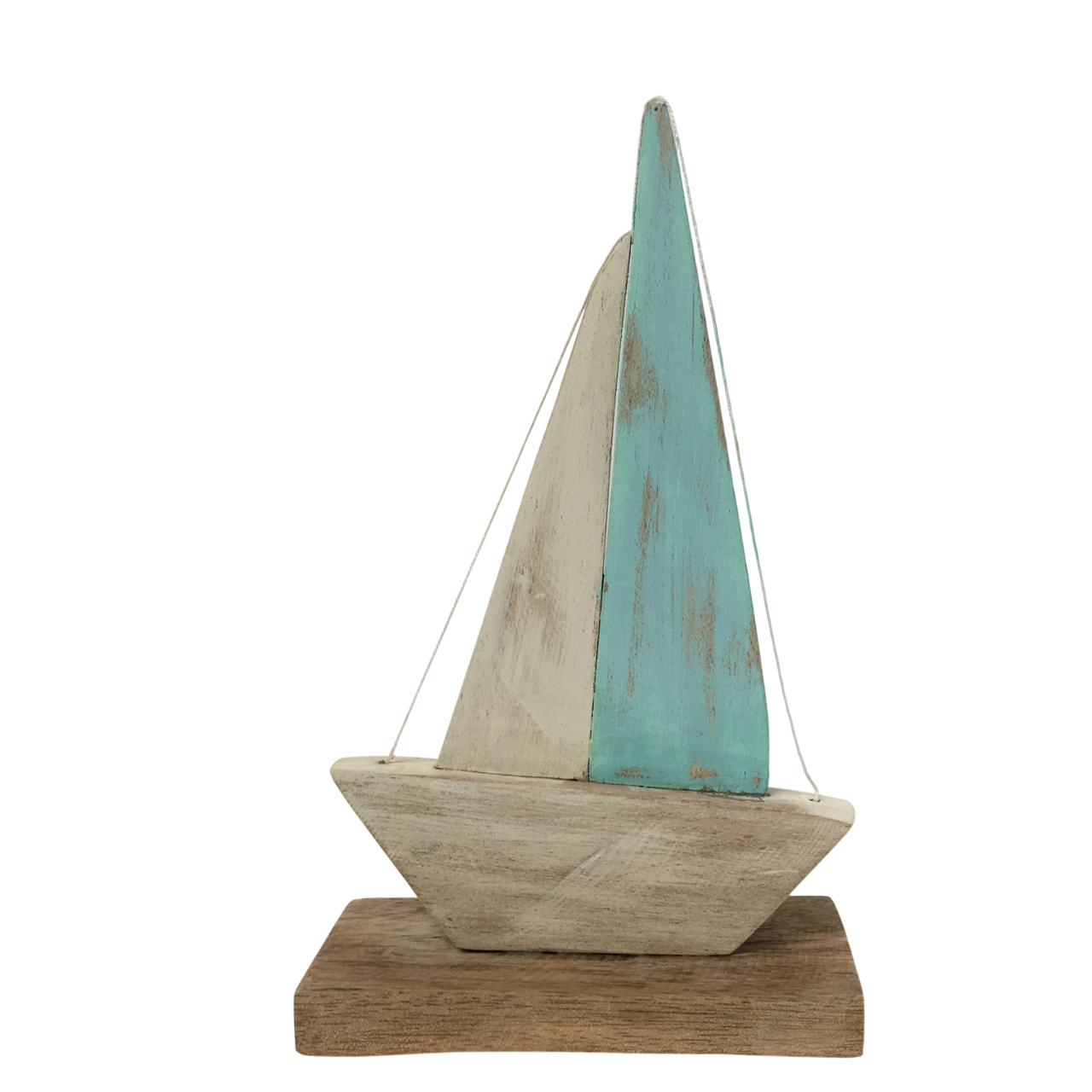 Velero minimalista elaborado en madera y pintado en estilo envejecido para darle un toque de decoración náutica a tus espacios.